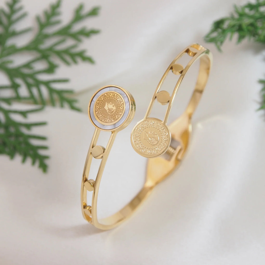 Gold-toned, Stainless Steel Bangle, Openable, Anti-Tarnish, Waterproof Jewelry ✦ Specifications ✦Material: Stainless SteelPlating: Gold-PlatedColor(s): GoldStyle:...