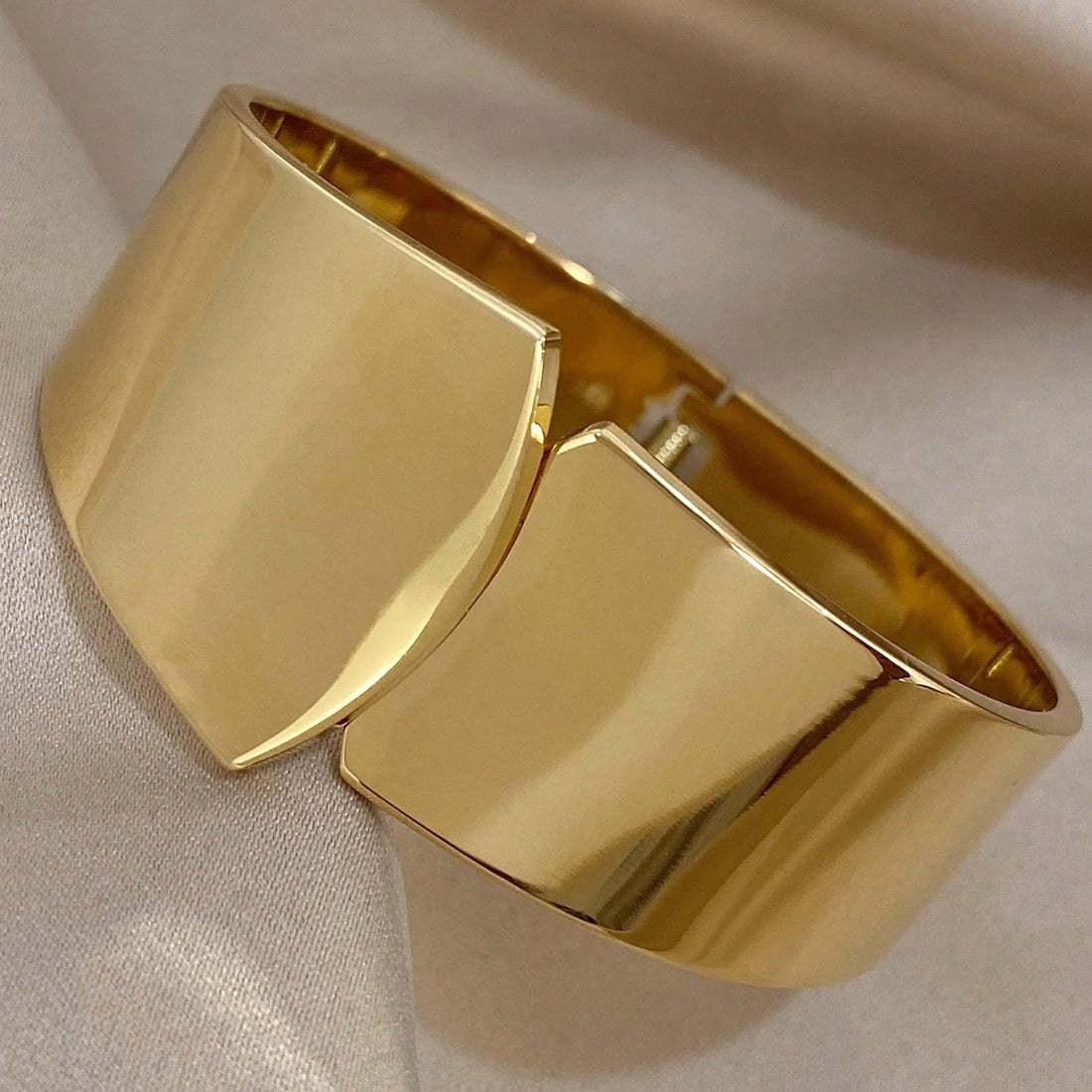 1 pc Minimalist Chunky Stainless Steel Bracelets Gold Color Women Elegant Wide Cuff Bracelets Daily...