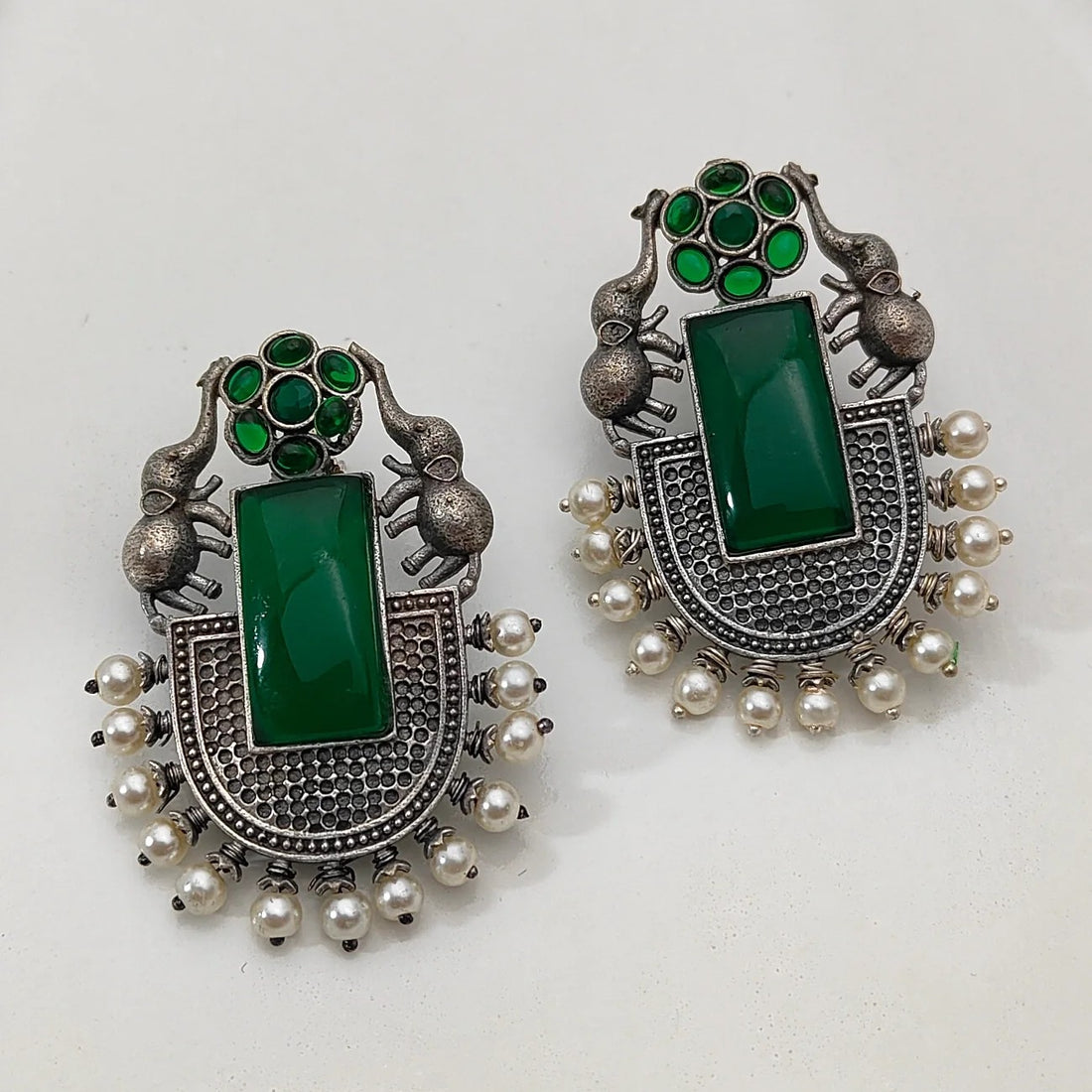 Discover the unique and stunning Elephant Design Earrings, featuring vibrant Green Stone, carefully Handmade and...