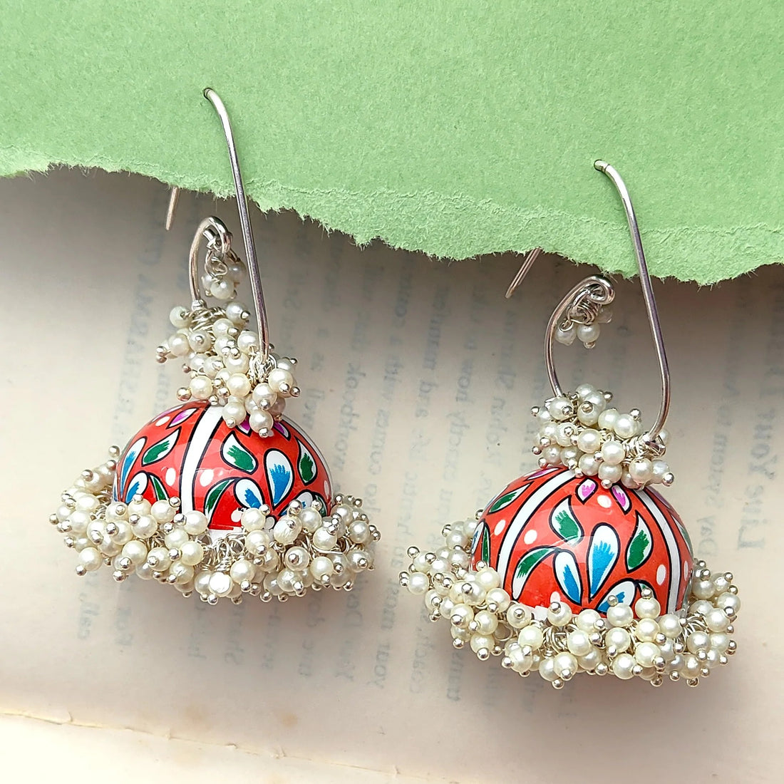 Handpainted Meenakari Beaded Floral Jhumka Earrings
