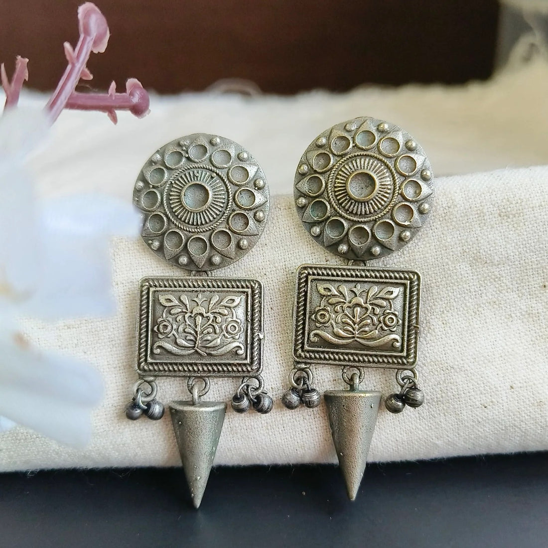Silver-Lookalike Antique Indian Oxidised Dangler Earrings