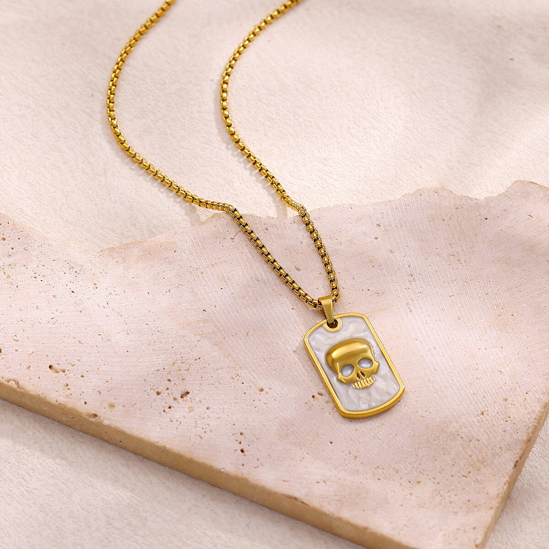 Gold-Plated Anti-Tarnish Skull Embossed Pendant Necklace