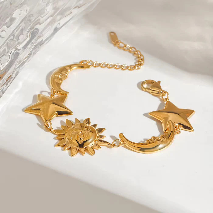 18K Gold-Plated Sun, Star & Moon Charm Celestial Design Bracelet