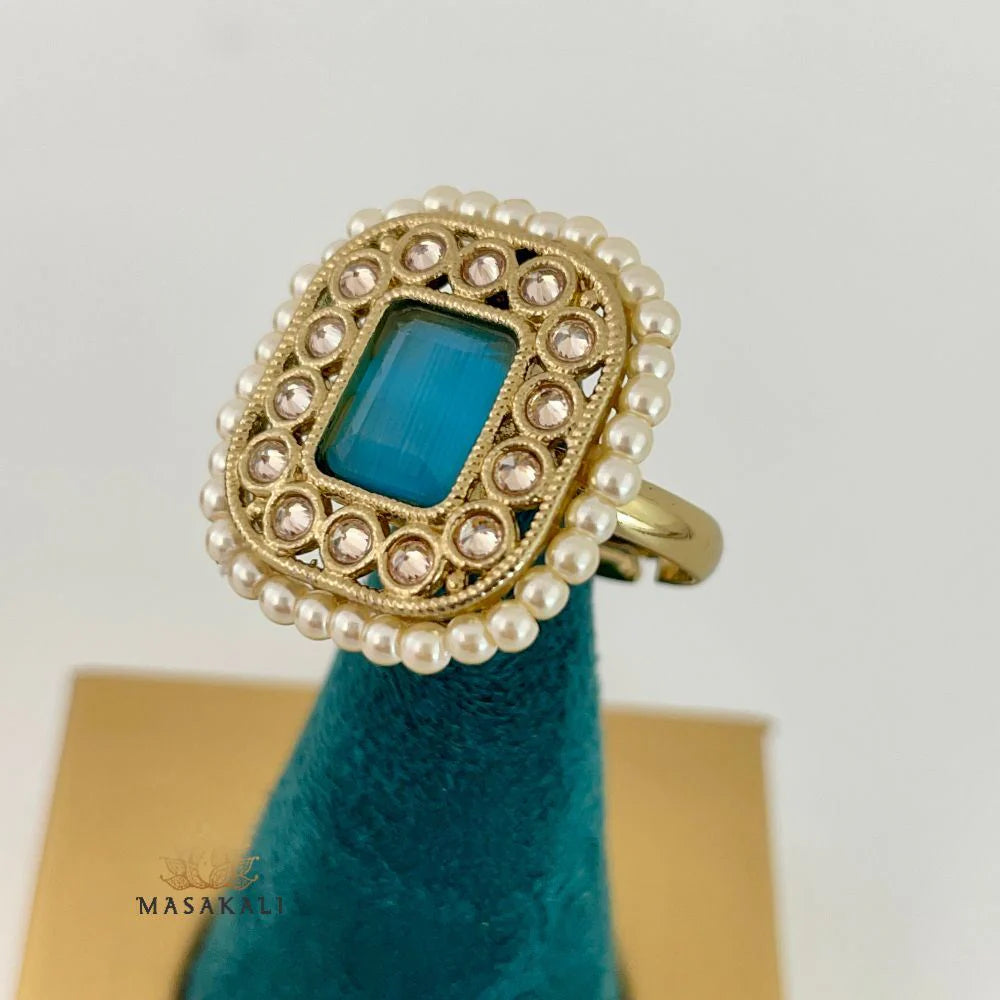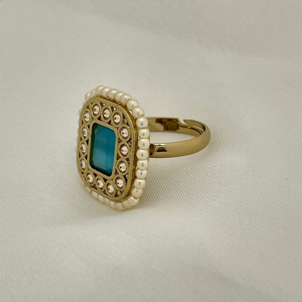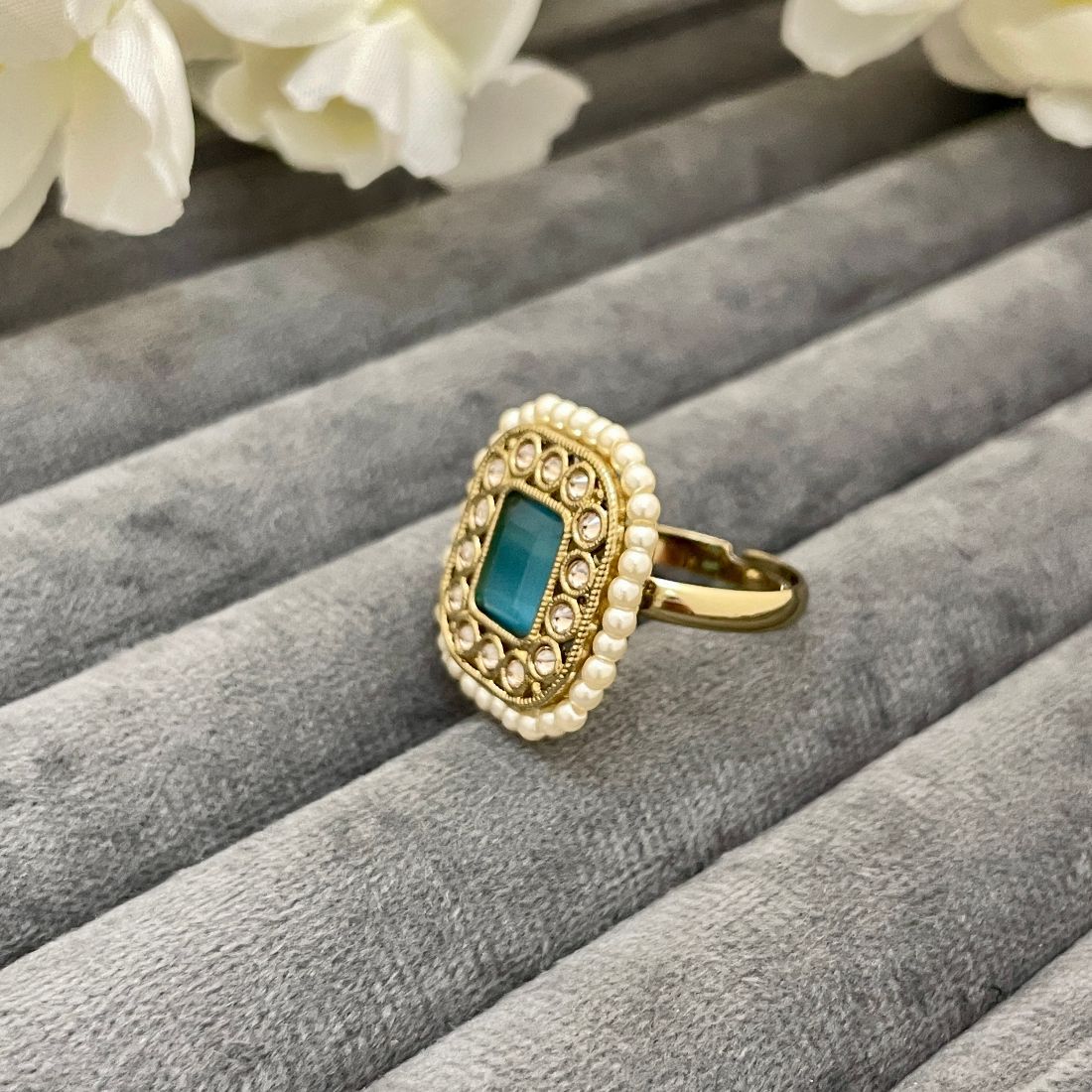Adjustable Copper Gold-Toned Kundan Pearl Embellished Ring