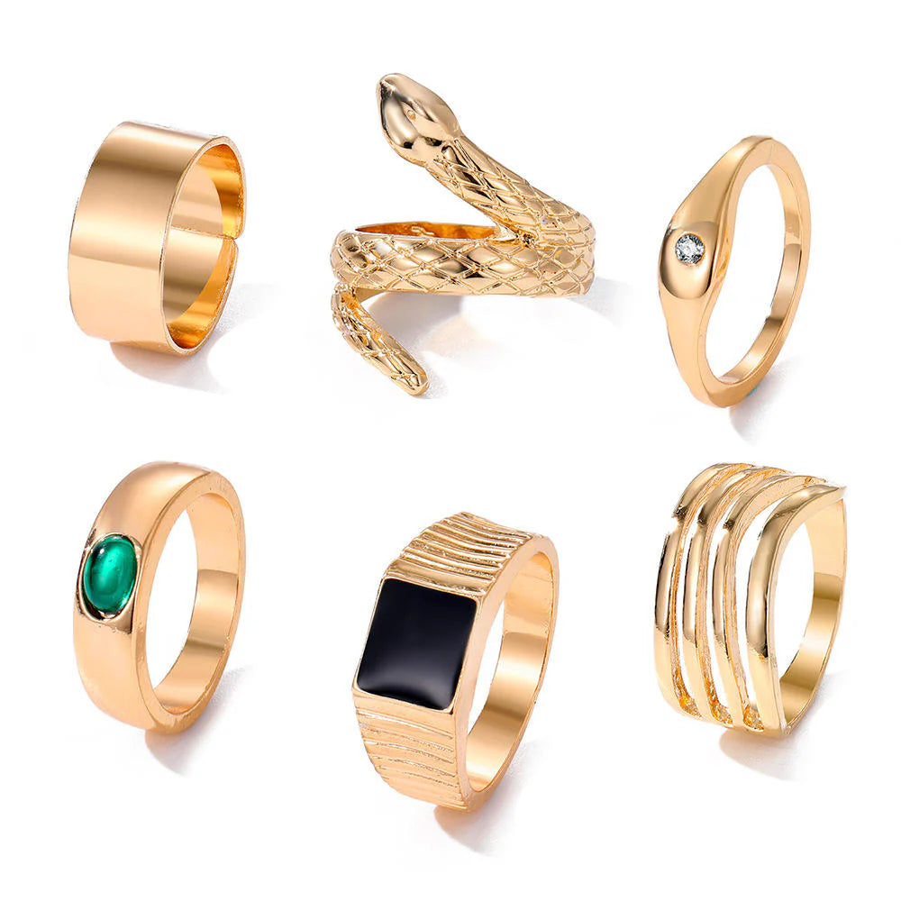 Gold-Plated Punk Fashion Stacking Rings 6-Pack
