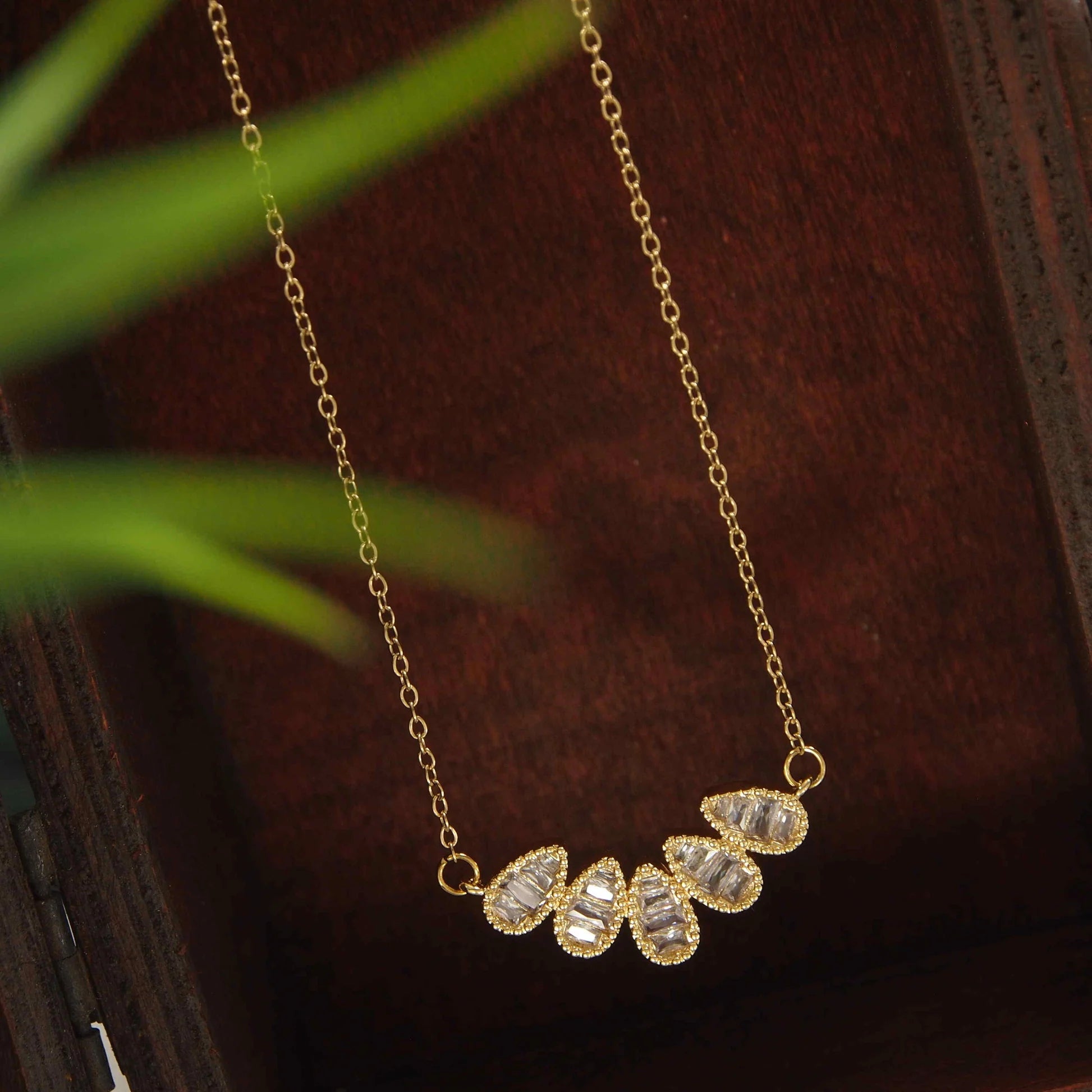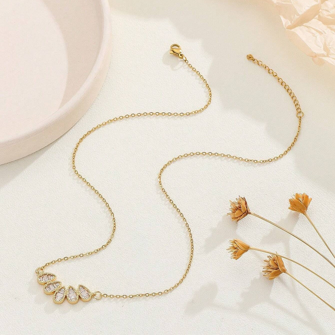 Gold-Plated Stainless Steel Raindrop-Shaped Zirconia Embedded Pendant Necklace