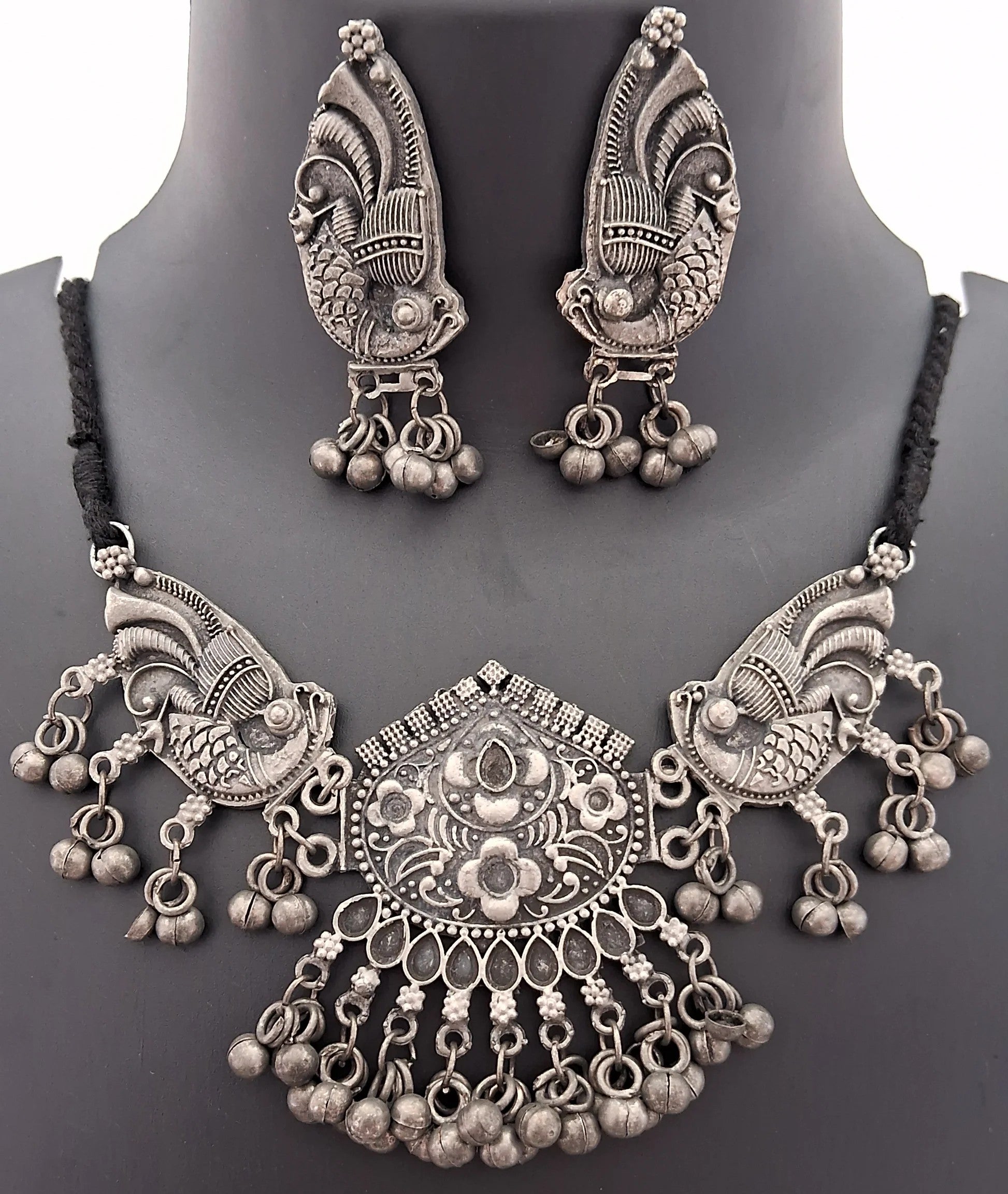 Oxidised Silver-Plated Antique Choker With Earrings
