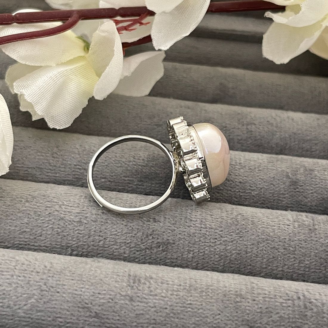 Classic cubic zirconia stone-studded statement finger ring for women & girls. The adjustable design ensures a perfect fit, making it a versatile and timeless addition to your ring collection.