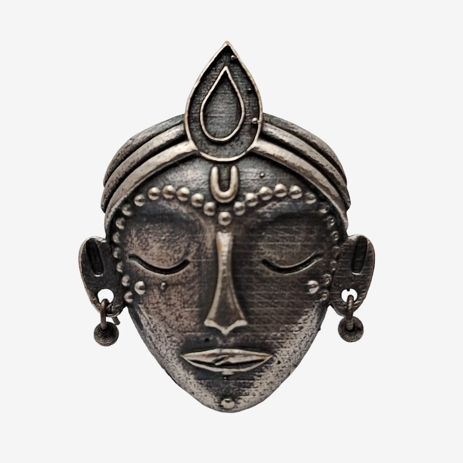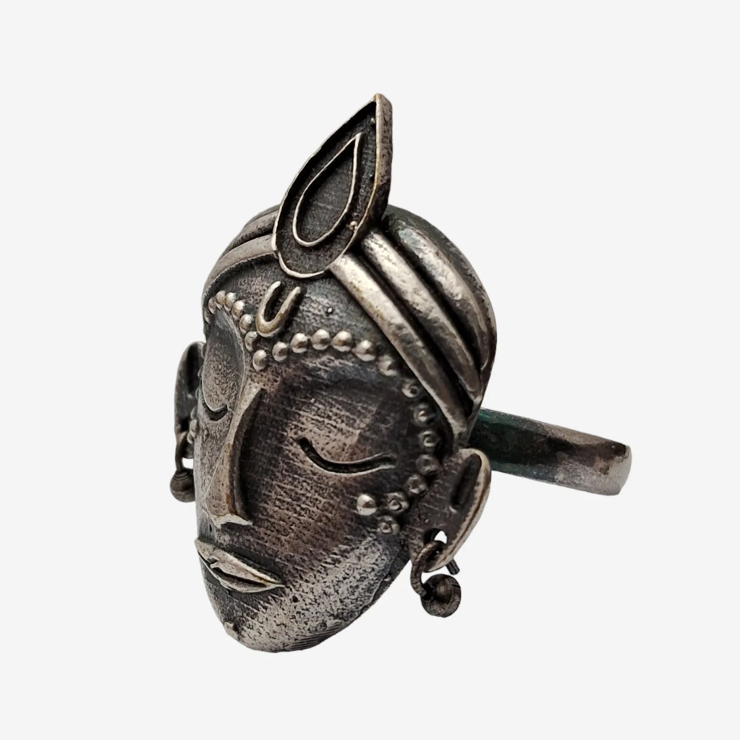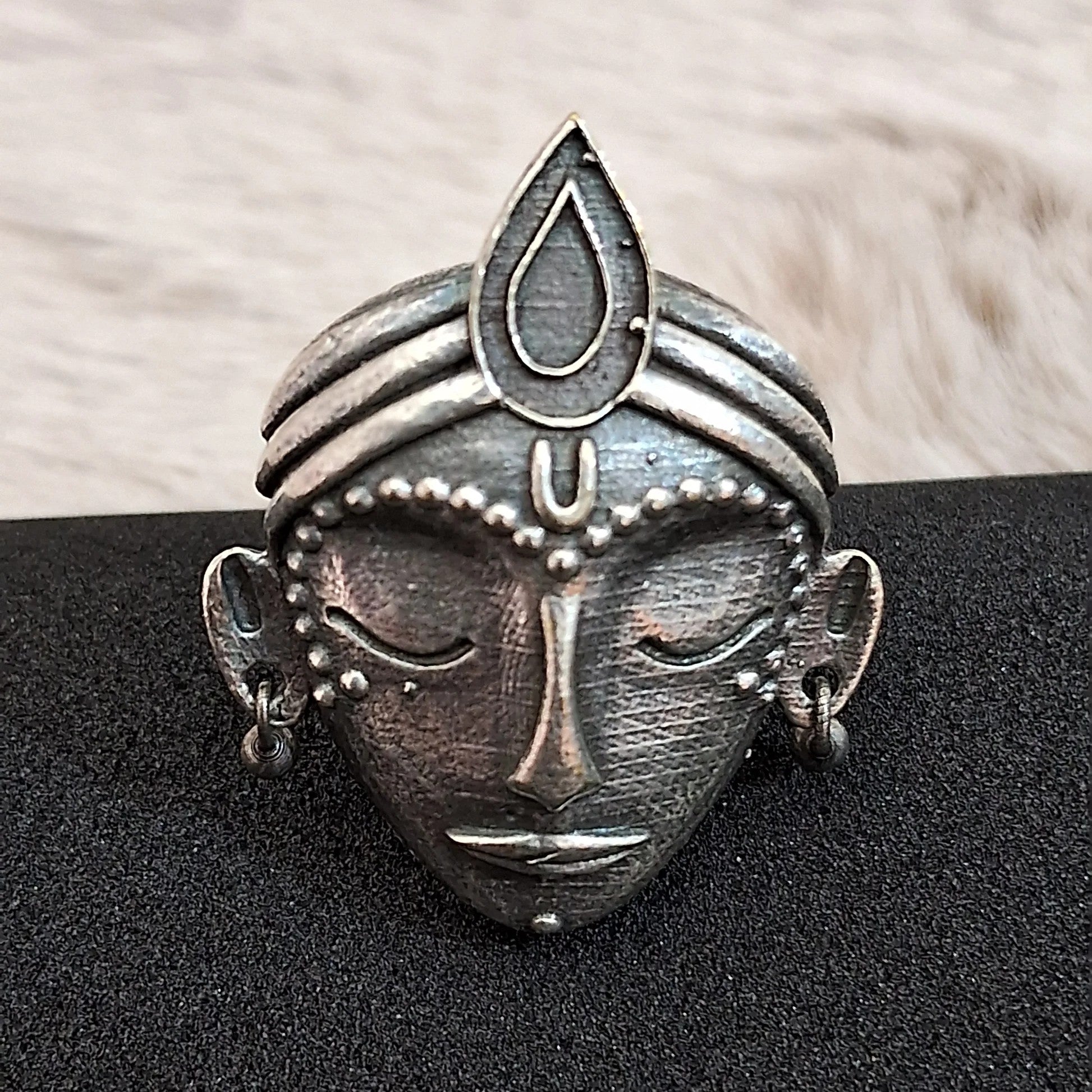 Silver Oxidised Shree Krishna Face Design Finger Ring
